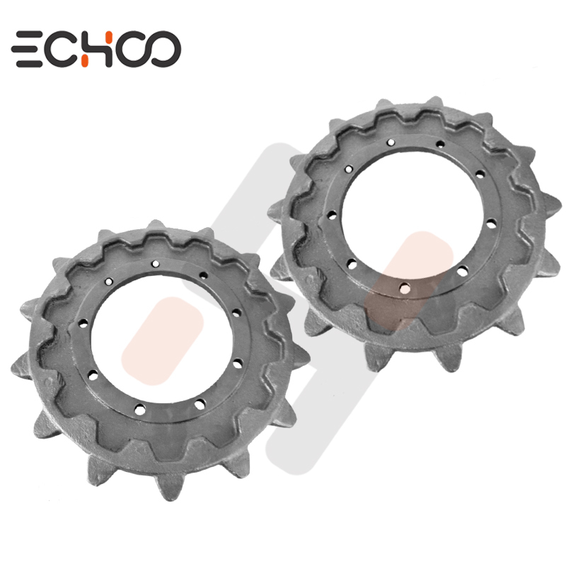 Los engranajes deben ser reemplazados junto con las vías de caucho.Puede producirse una falla prematura debido a que la alineación de los dientes de transmisión y los enlaces de la cadena de la vía no se alinearán correctamente.La pista finalmente se deslizará hacia arriba y hacia abajo en los dientes de accionamiento en lugar de aplicar suavemente el par adecuado para girar la pista.Siempre recomendamos instalar pistas de goma y ruedas dentadas para extender la vida de ambos componentes.